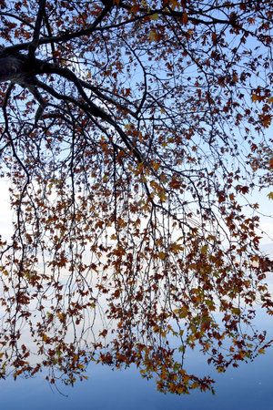 Branches of plane tree at autumn