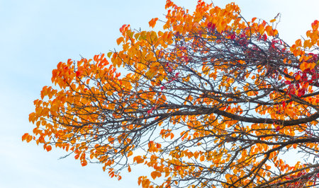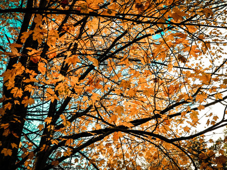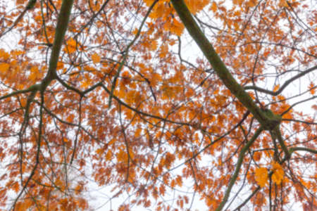 Autumn tree with nice and colorful orange leaves. Autumn maple leaves. Nature background in fall season.