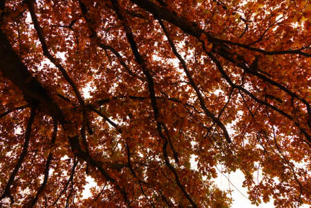 Oak tree during autumn foliage on a sunny day
