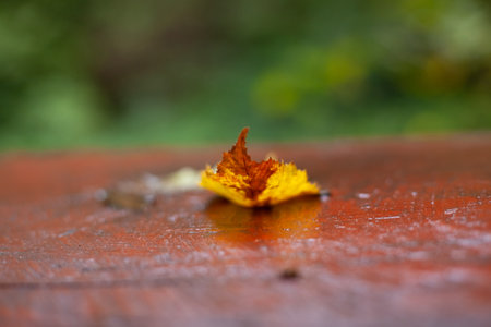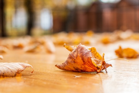 autumn leaves after rain on the table