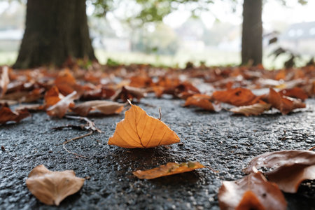 Autumn leaves on pavement