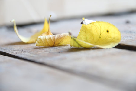 .Abstract autumn background-fallen leaves on wooden background