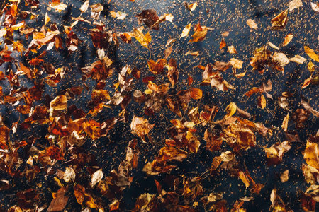 Fallen autumn leaves on whole background, space for text