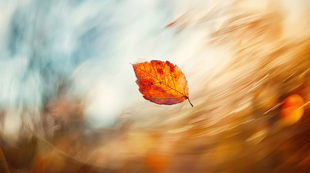 Golden leaves twirling in the autumn breeze. Peaceful nature scene.