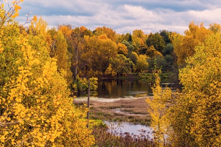An autumn landscape with a pond in Russia