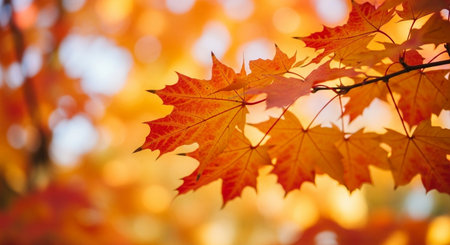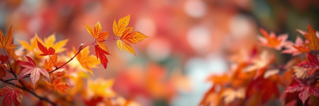 Vibrant Autumn Colors Maple Leaves in Bright Reds, Oranges, and Yellows on Soft Background