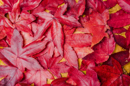 Autumn leaves background. Red, orange and yellow maple leaves texture.