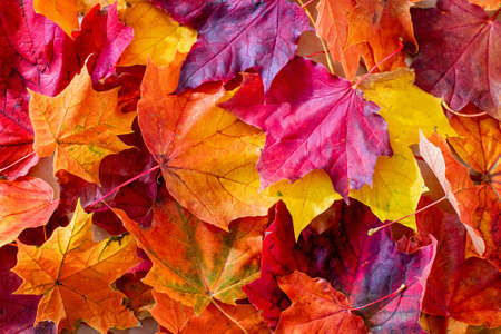 Colorful autumn leaves background. Red, yellow and orange maple leaves