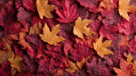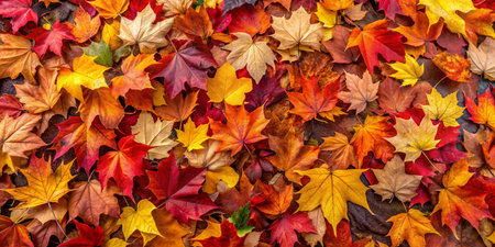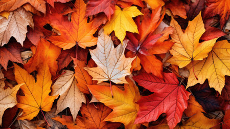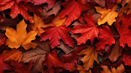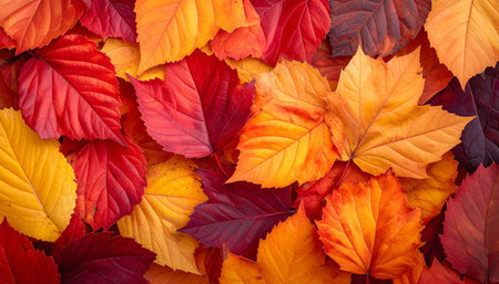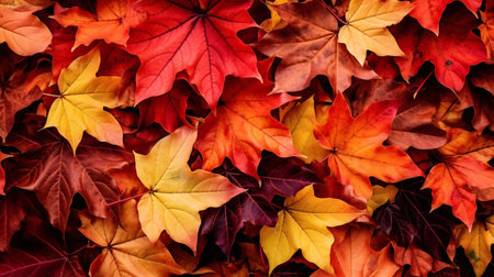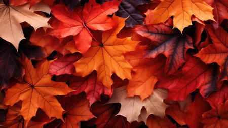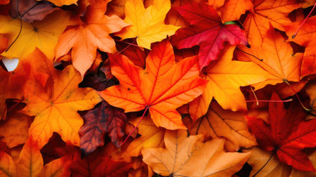 Beautiful autumn leaves background with vivid red, orange, and golden tones, showing the essence of fall. Perfect for digital backdrops, seasonal designs, nature-inspired art, or