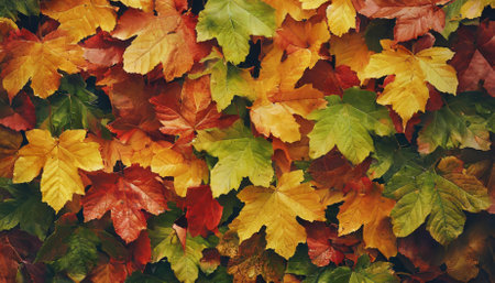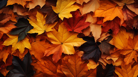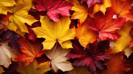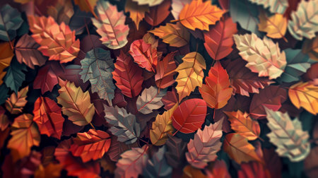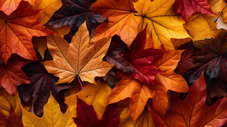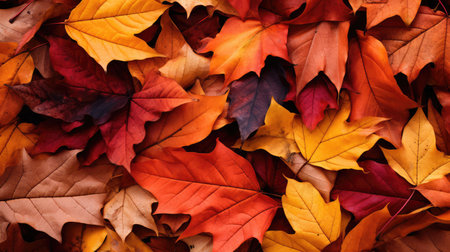 Beautifully crafted autumn leaves background showcasing vivid red, orange, and yellow foliage, perfect for seasonal designs, digital art, or nature-themed projects, radiating warmth, elegance,