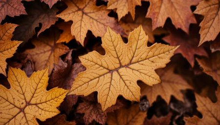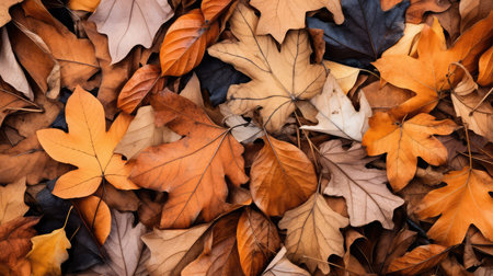 A close up of a pile of leaves that are brown, yellow and orange, AI
