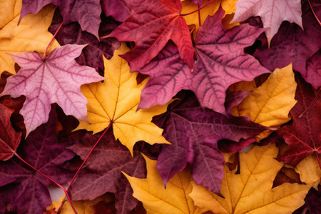 Beautiful colorful autumn fallen maple leaves top view. AI generated