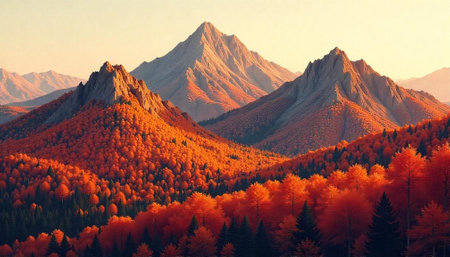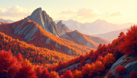 Majestic autumn mountain range landscape with vibrant foliage colors