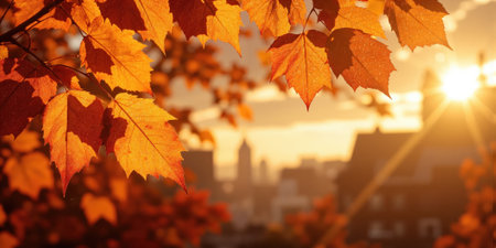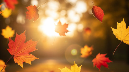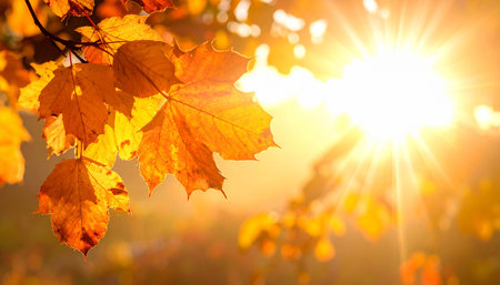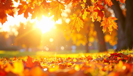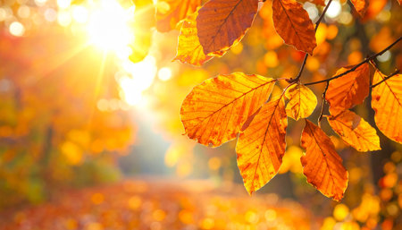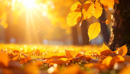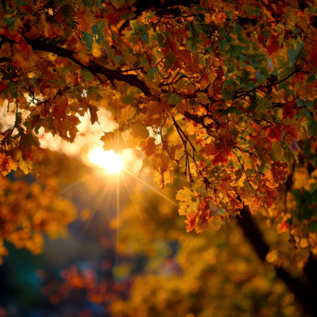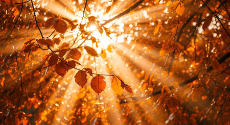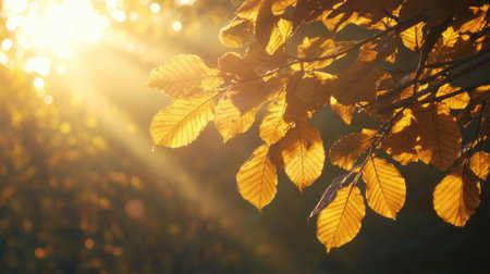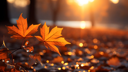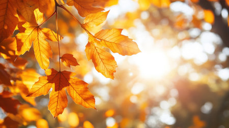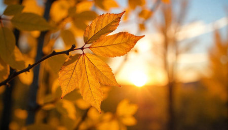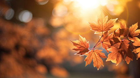 Golden Hour Glow Autumn Leaves Bathed in Warm Sunlight, Creating a Dreamy Bokeh Effect