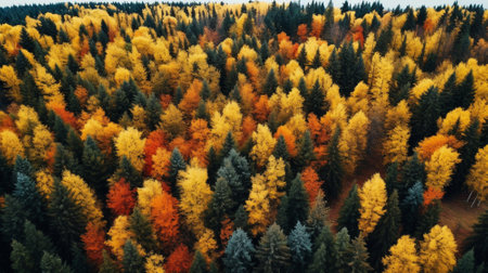 Autumn forest with colorful trees. above drone view. Generative AI.