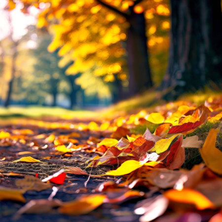 An AI generated illustration of autumn leaves on the ground in a park