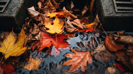 autumn storm drain leaves