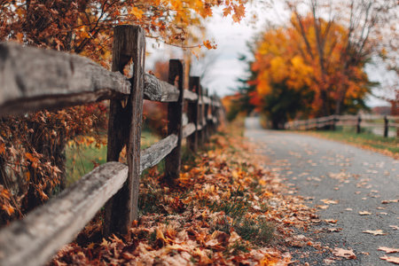 Rustic Wooden Fence Along Country Road with Vibrant Fall Foliage