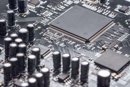 Close-up of electronic circuit board. Technology background. Selective focus.