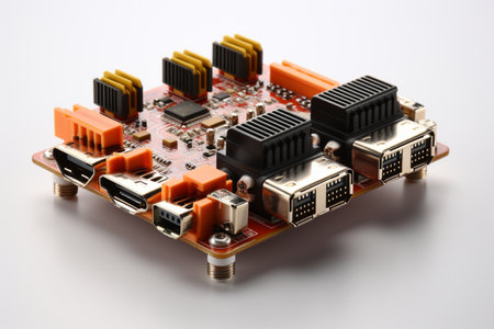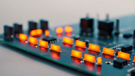 AI Generated. Illuminated Circuit Board with Orange Lights