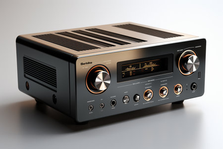 Product hero of music amplifier with CD, tuner and internet radio - blue tone tilt-shift,