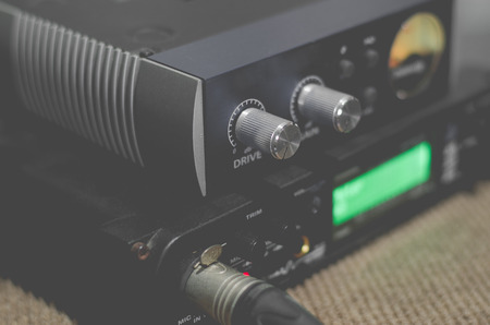 Old music amplifier twists, nostalgia background, toned