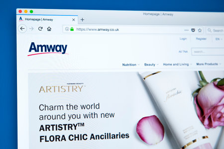 LONDON, UK - JANUARY 25TH 2018: The homepage of the official website for Amway - the American company specialising in the use of multi-level marketing to sell health, beauty and home care products, on 25th January 2018.