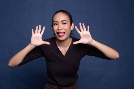 Head And Shoulders Studio Shot Of Woman Pulling Faces And Smiling At Camera