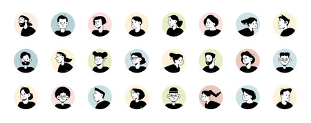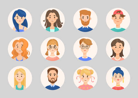 Different young people portraits. Guys and girls avatars. Vector illustration