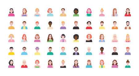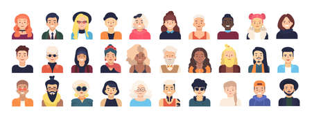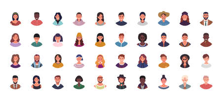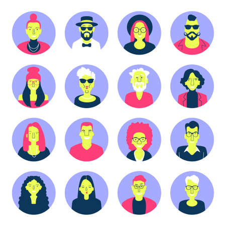 Set of different people portraits. Vector illustration in a flat style