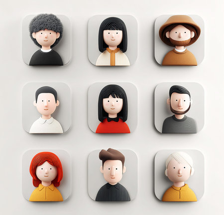 Interactive data compilation and image gathering, illustrating individuals' facial expressions and personalities.