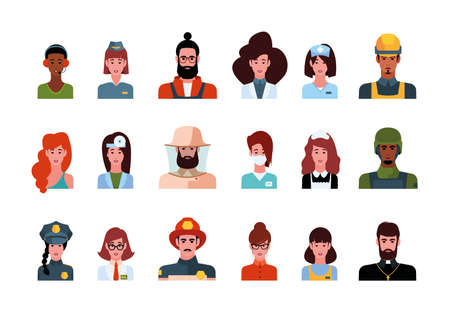 Isolated professions avatar icons on white background.