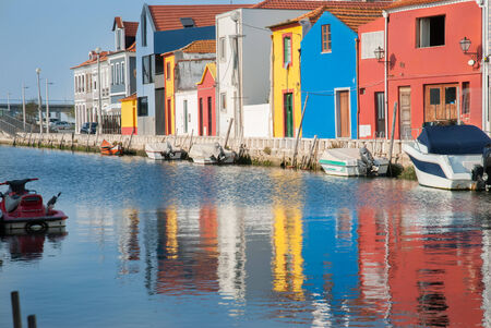 Typical colored houses, San Roque canal, Os Botiroes, Aveiro, Beira Litoral, Portugal, europe