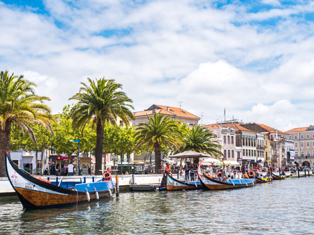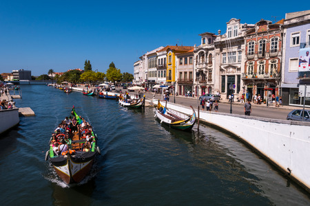 Aveiro, Portugal - July 9, 2017: Boats for tourist tours in the main channel of Aveiro