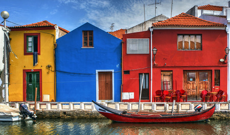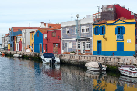 Aveiro, Portugal - November 25, 2010: Colorful picturesque houses along the canal in Aveiro