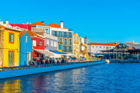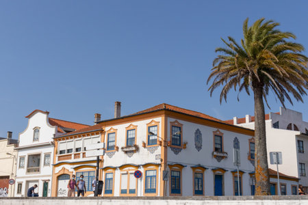 Aveiro, Portugal - 21.05.2022: embankment with typical houses