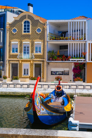 Aveiro, Portugal - 21.05.2022: Traditional boat on the canal in Aveiro, Portugal