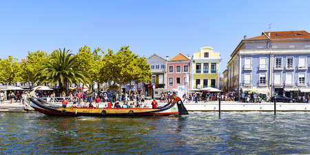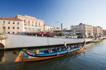 AVEIRO, PORTUGAL - JULY 28, 2016: Moliceiro or Traditional Boat in the Center of Aveiro, Centro region, Portugal.