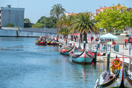 Aveiro, Portugal - 21.05.2022: Traditional boats on the canal in Aveiro, Portugal
