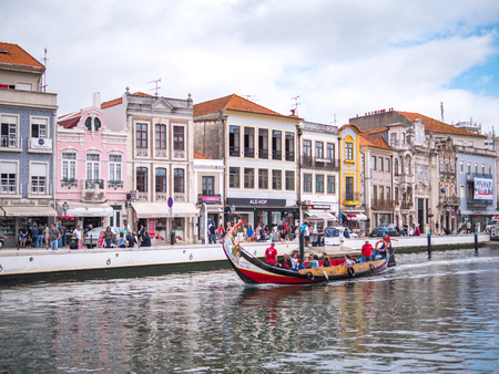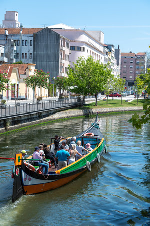 Aveiro, Portugal - July 9, 2017: Boat of tourists in the main channel of Aveiro