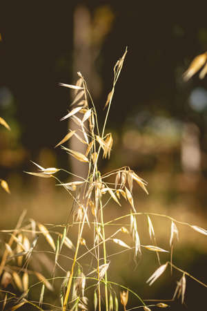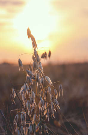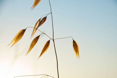 Dry oat plant in sunset dawn