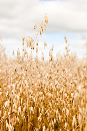 organic golden ripe ears of oats in field