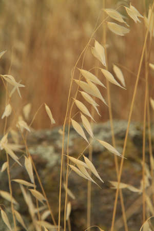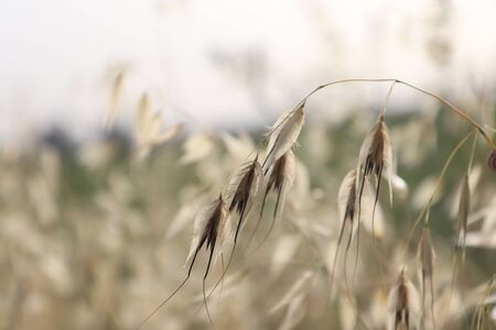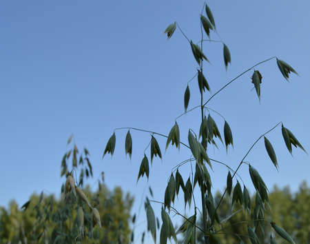 Agriculture. Ears of wild oat in the field