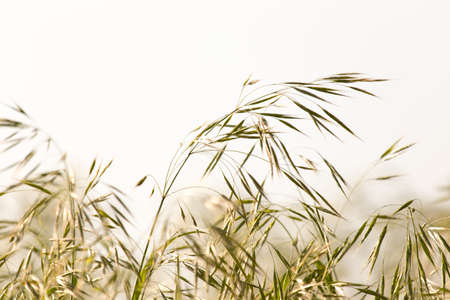 Dry grass on the wind close-up, selective focus, abstract summer background