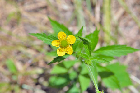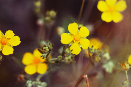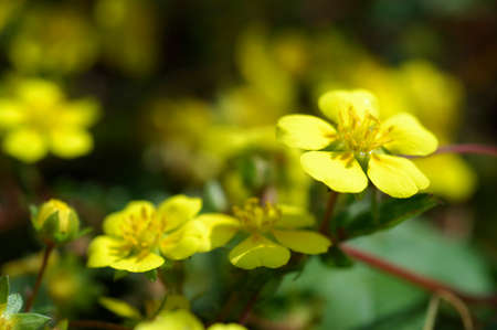Tormentil or septfoil Potentilla erecta flower macro, selective focus, shallow DOF.
