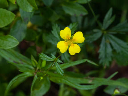 Yellow Cinquefoil flower (or Fingerkraut) in St. Gallen, Switzerland. Its Latin name is Potentilla Eriocarpa (Syn Potentilla Davidii), native to Himalayas Moldova