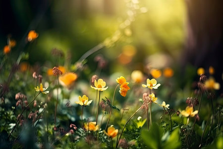 Beautiful yellow flowers in the garden, shallow depth of field. generative ai