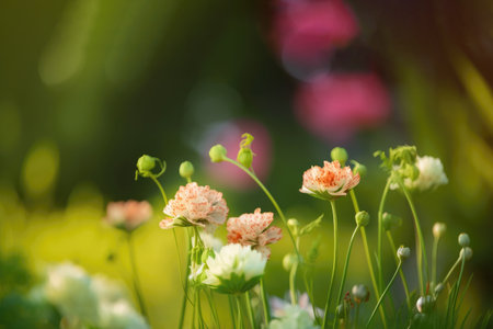 Multicolored Cosmos flower blooming in spring-summer in the field under sunshine. Select focus.