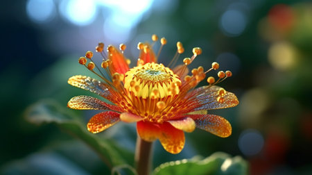 A close-up of a vivid orange flower with yellow accents displaying its delicate petals and intricate center.