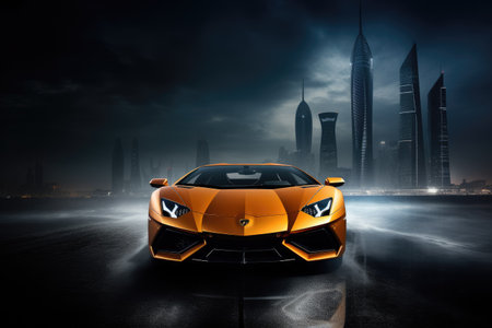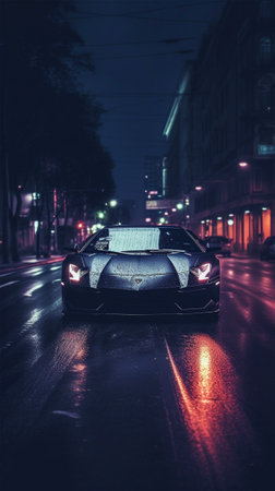 creative images 4k resolution smartphone wallpaper, Lamborghini car cornering when rain dark shine city 3d rendering